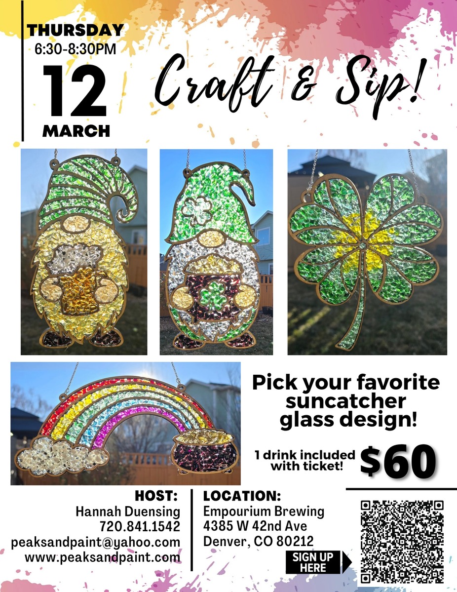 Craft & Sip - Crushed Glass Suncatcher Workshop St. Patty's Day Edition