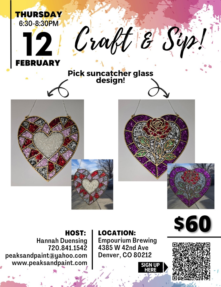 Get ready to unleash your creativity with Valentine Suncatchers - it's time to craft, sip, and make some magic happen!