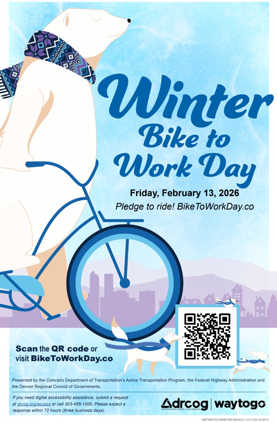 It's almost time to bundle up for Winter Bike to Work Day! Join Way to Go and thousands of bike commuters and skip a ride in your car for a ride on two wheels instead. Help Way to Go sustain programs like Winter Bike to Work Day by pledging to ride each year to show your support. Ride your bike to our taproom and receive $1 off your pints of beers!